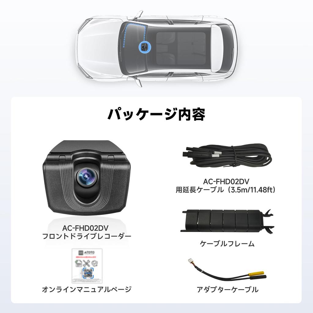 ATOTOZONE AC-FHD02DV FHD 1080P Видеорегистратор, Воспроизведение GPS-трека, Широкий угол обзора 136°, WDR, Ночь