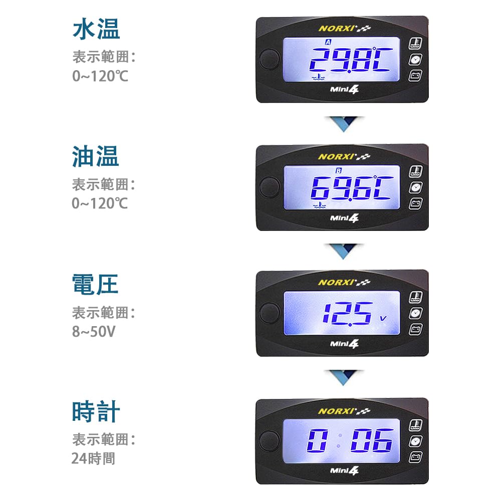 NORXI Многофункциональный цифровой прибор для мотоцикла 4 в 1, Мини 4 (Переключаемый на 4 дисплея