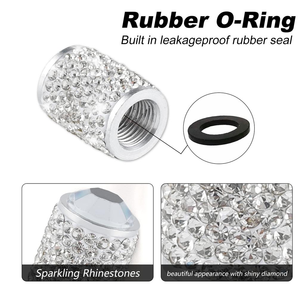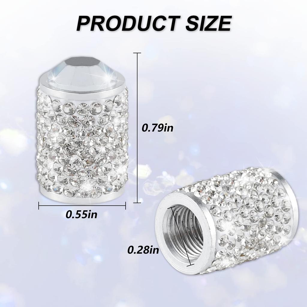 Alpmosn Колпачки вентилей колес автомобиля 4 шт. Блестящие колпачки вентилей шин, Хрустальные колпачки для шин