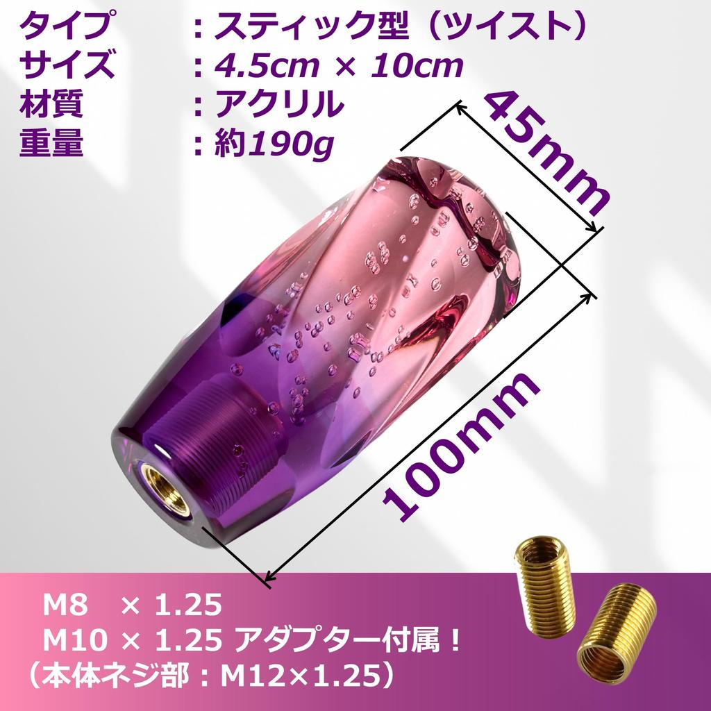 tonra Crystal Shift Knob Shift knob Universal Adapter M8 M10 M12 45x100mm 190g MT AT Car Twist Pink x Purple