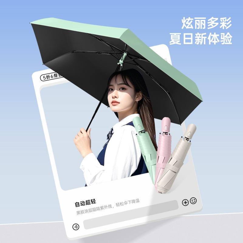 Трехсекционный шестиспицевый ультралегкий автоматический зонт из виниловой ткани, солнцезащитный зонт с защитой от УФ-лучей, карманный зонт двойного назначения для погоды и дождя