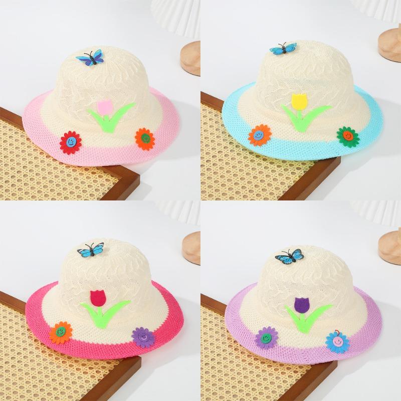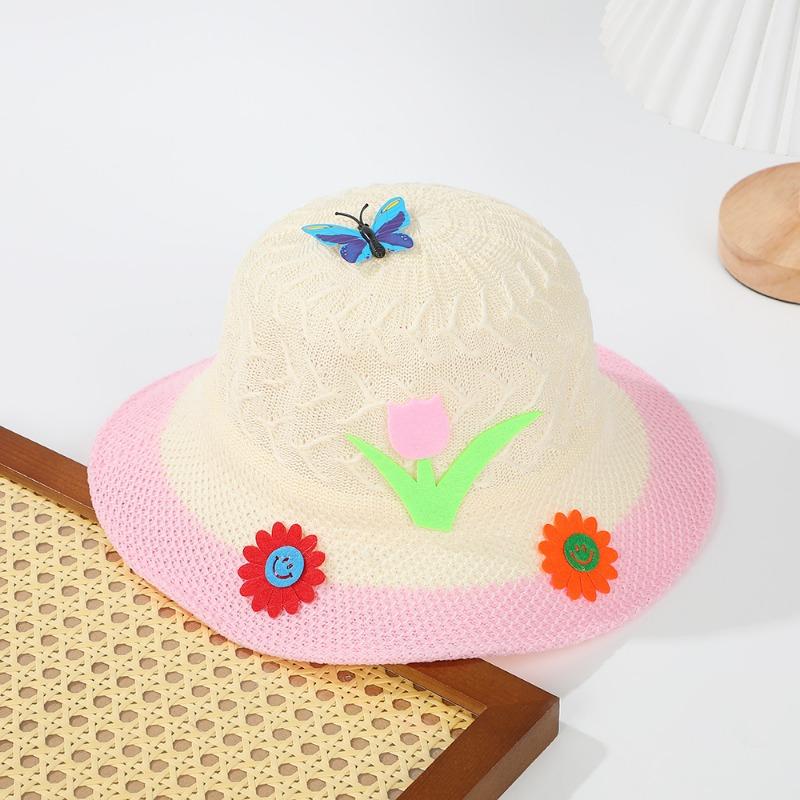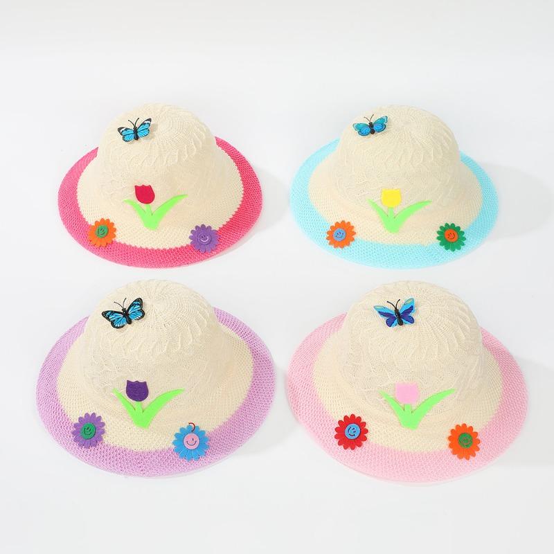 Spring and summer macaron baby sun hat girls children's fun butterfly flower cute sun hat children's gift