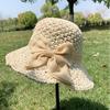 Новая летняя маленькая свежая соломенная шляпа от солнца женская маленькая шляпа-ведро простая бантик универсальная шляпа от солнца