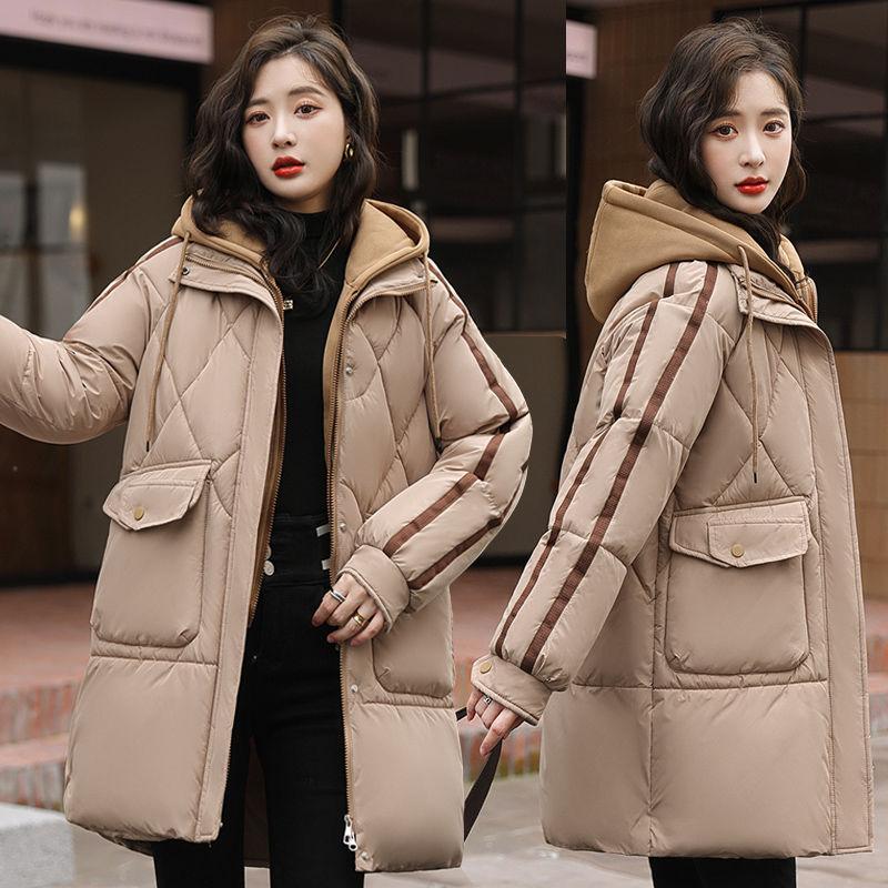 Зимняя одежда в тон Толстая куртка большого размера с пуховым наполнителем Женская средней длины Теплая куртка с наполнителем Куртка-пуховик