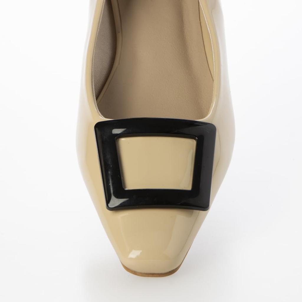 Туфли-лодочки с квадратной пряжкой Evol IX5458 из бежевой лакированной кожи, размер подходит для любой погоды, женские каблуки 2,5 см, кожа, 23,5 см,