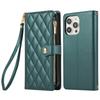 For iPhone 15 Pro Max Case Multi Card Slots Zipper Rhombus Leather Phone Cover with Wrist Strap