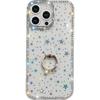 For iPhone 15 Pro Case with Ring Kickstand Rhinestone Edge TPU+PC IMD Phone Cover