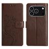 For iPhone 17 Pro Leather Wallet Case Butterfly Flower Imprinted Phone Cover with Strap