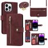 For iPhone 14 Pro Max Stand Case PU Leather Phone Cover with Straps/Zipper Wallet/Multiple Card Slots