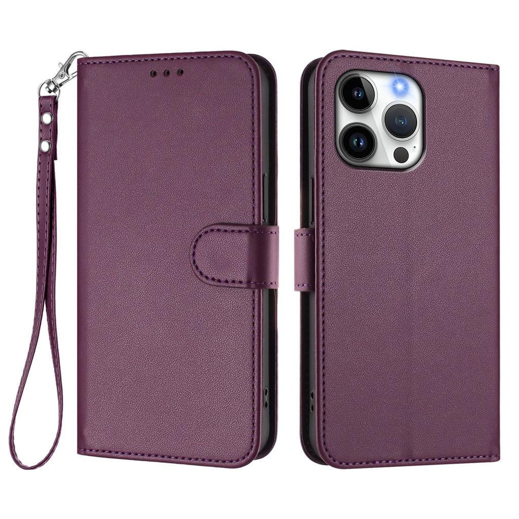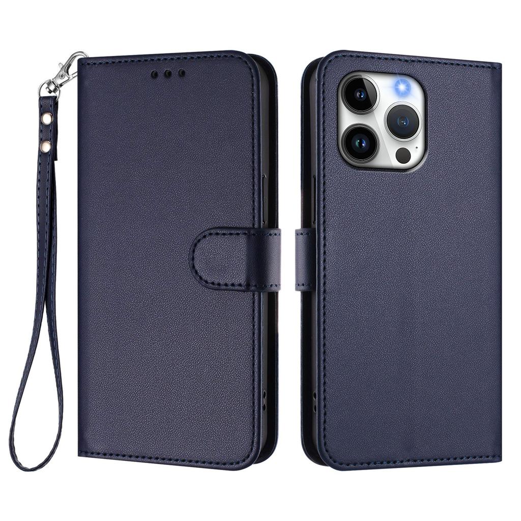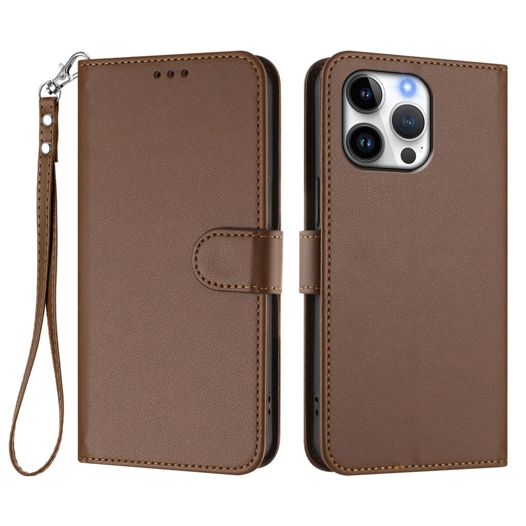 For iPhone 16 Pro Max Leather Case Wallet Stand Phone Cover with Wrist Strap