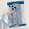 Чехол для iPhone 15 Pro с держателем для карт, ремешком на запястье, лакированной текстурой змеи, задняя крышка из ПУ+ПК со шнурком