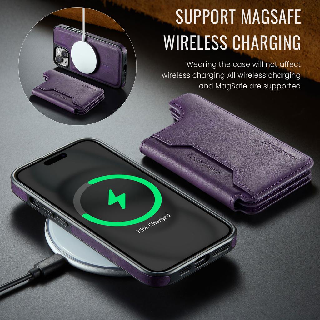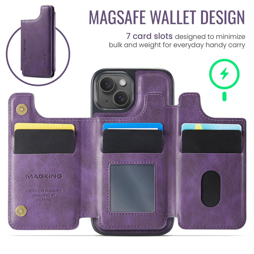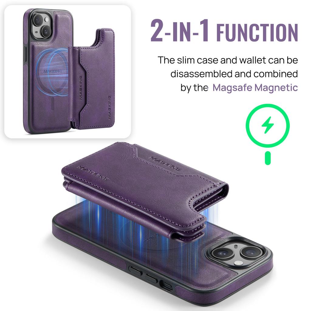MAGKING K3 Series For iPhone 15 Case Compatible with MagSafe Wallet PC+TPU+PU Phone Cover