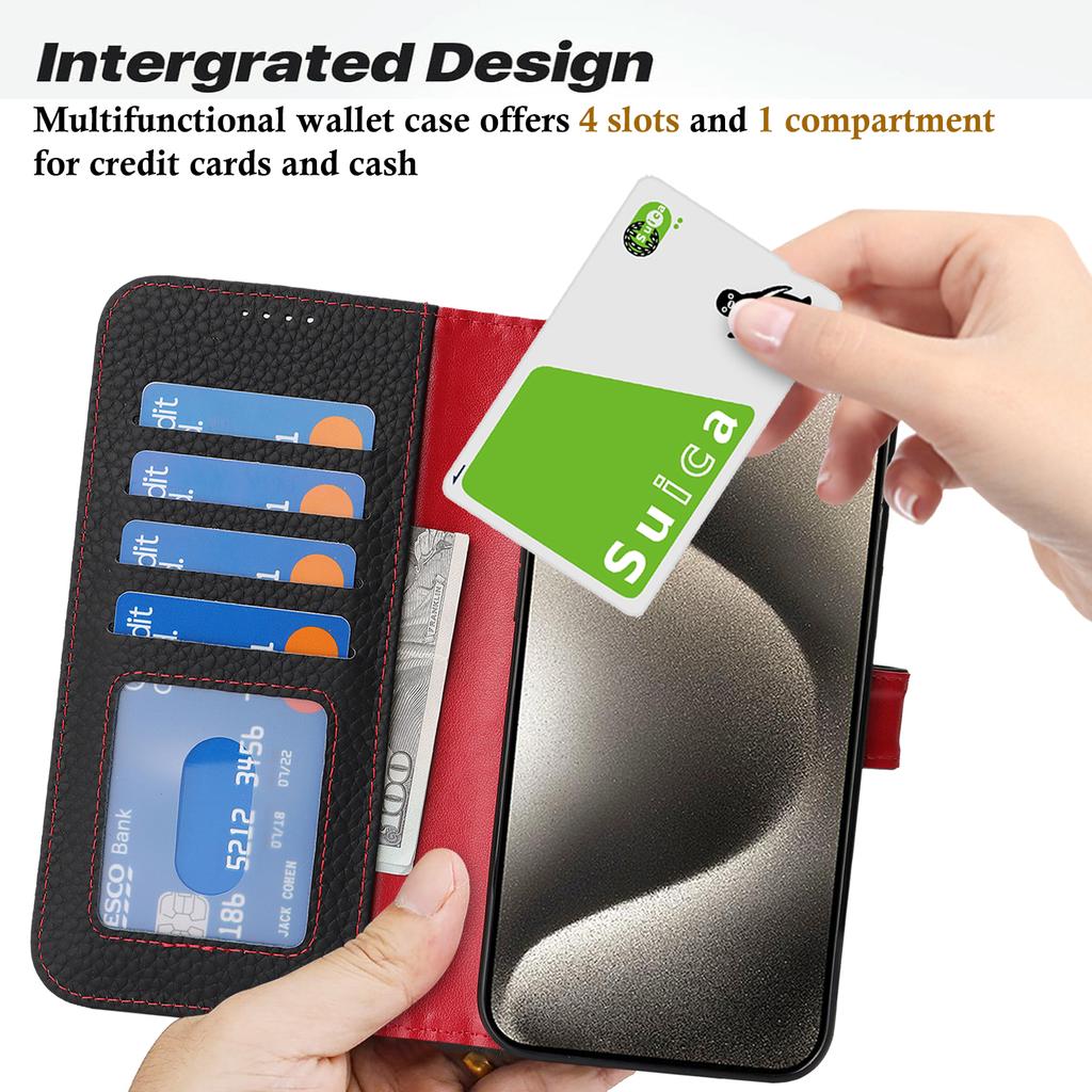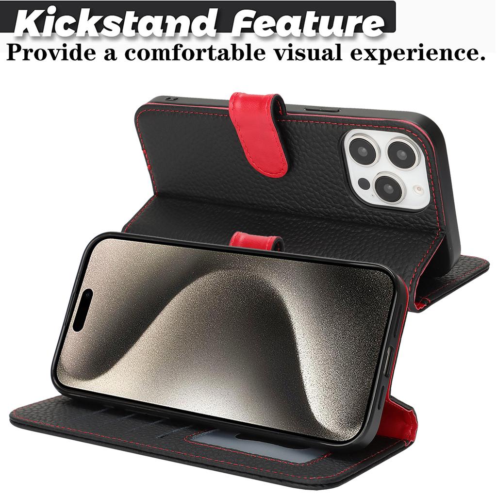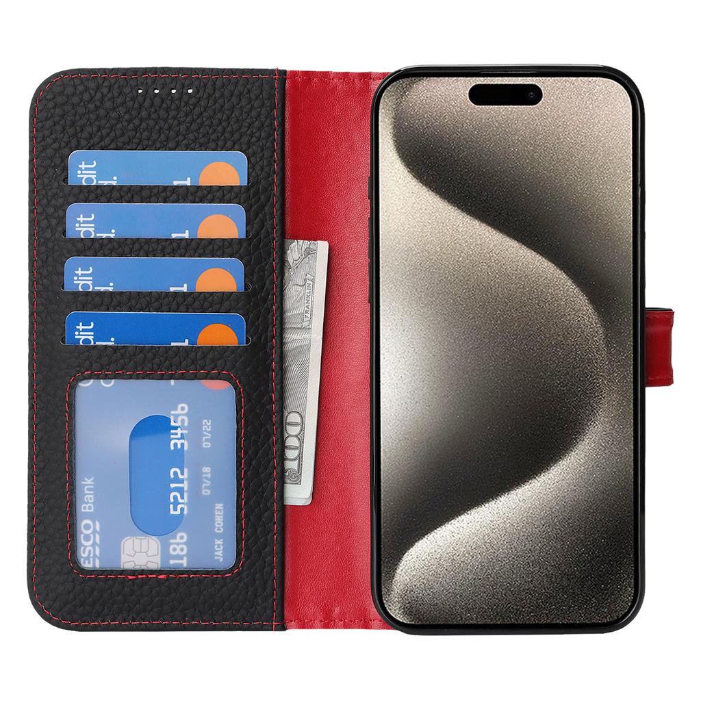 Чехол-подставка для iPhone 15 Pro, текстура личи, натуральная коровья кожа, кошелек, чехол для телефона, защита от RFID