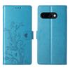 For Google Pixel 9a Wallet Case Butterfly Floral Imprint PU Leather Phone Cover with Wrist Strap