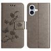 For iPhone 17 Case Wallet Stand Imprinted Butterfly Flower PU Leather Phone Cover