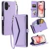 For iPhone 17 Leather Case with Wrist Strap Wallet Stand Phone Cover