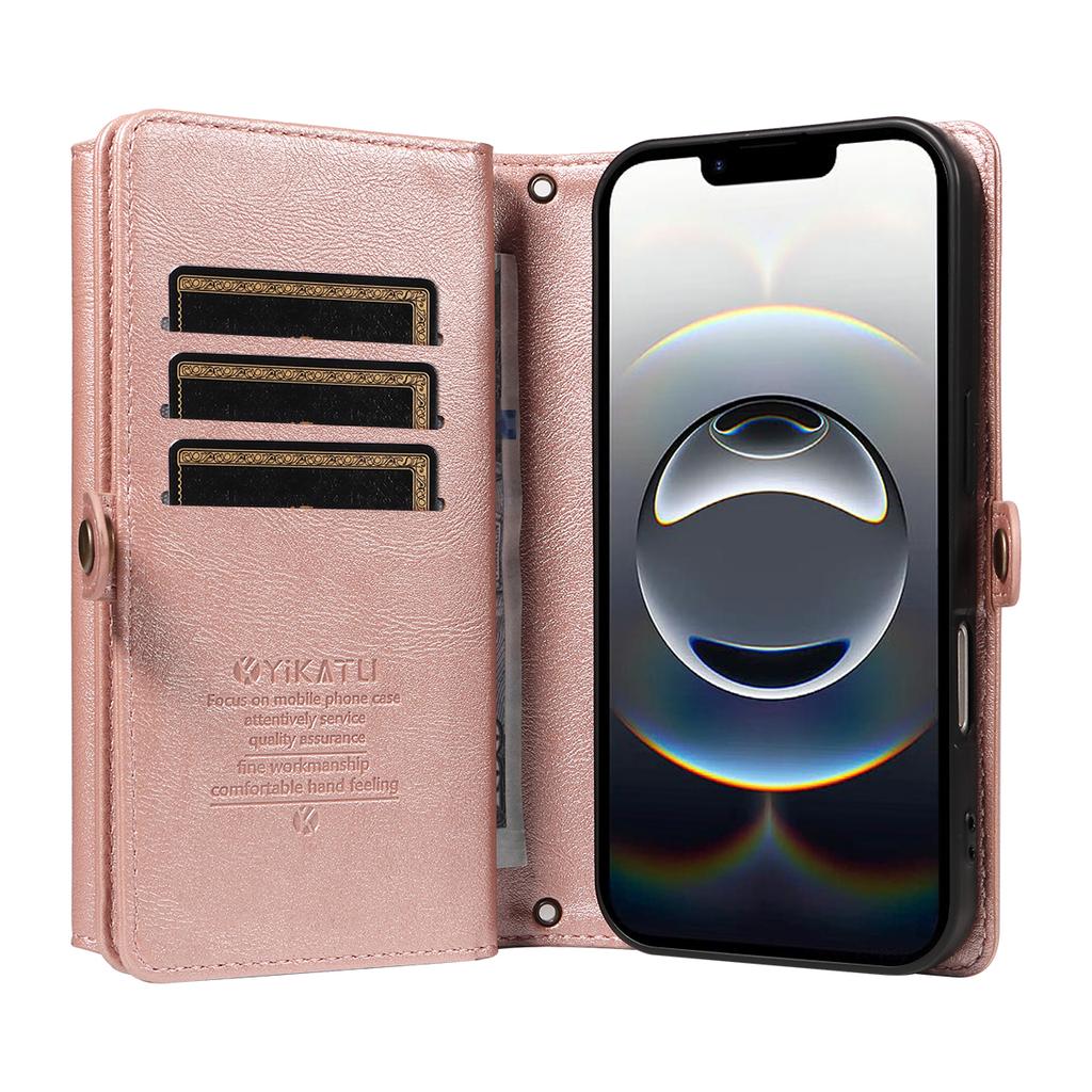 For iPhone 16e Case YIKATU YK-008 Zipper Wallet Leather Phone Cover with Shoulder Strap — купить товар онлайн с бесплатной доставкой по всему миру!