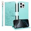 For iPhone 16 Pro Max Case RFID Blocking Imprinted Dog Pattern PU Leather Phone Cover with Wrist Strap
