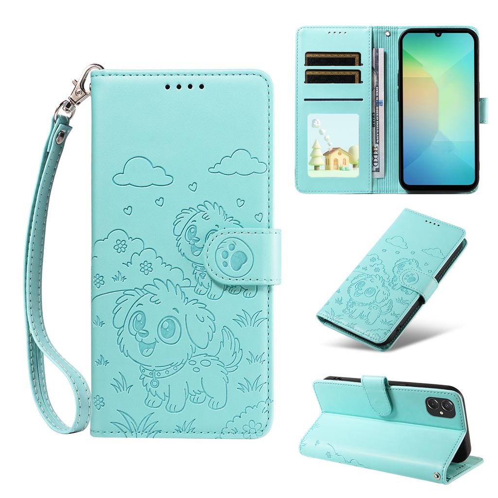 For Samsung Galaxy A06 4G/A06 5G/F06 5G/M06 5G/A07 4G Case RFID Blocking Imprint Dog Pattern PU Leather Phone Cover with Wrist Strap