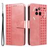 For Nothing Phone (3a) Pro Leather Case Wallet Stand Grids Imprint Phone Cover with Strap