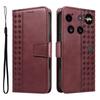 For Nothing Phone (3) 5G Leather Case Wallet Stand Grids Imprinted Phone Cover with Strap