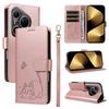 Чехол для Huawei Pura 80 Ultra с тиснением в виде кошки, кожаный чехол для телефона с ремешком на запястье