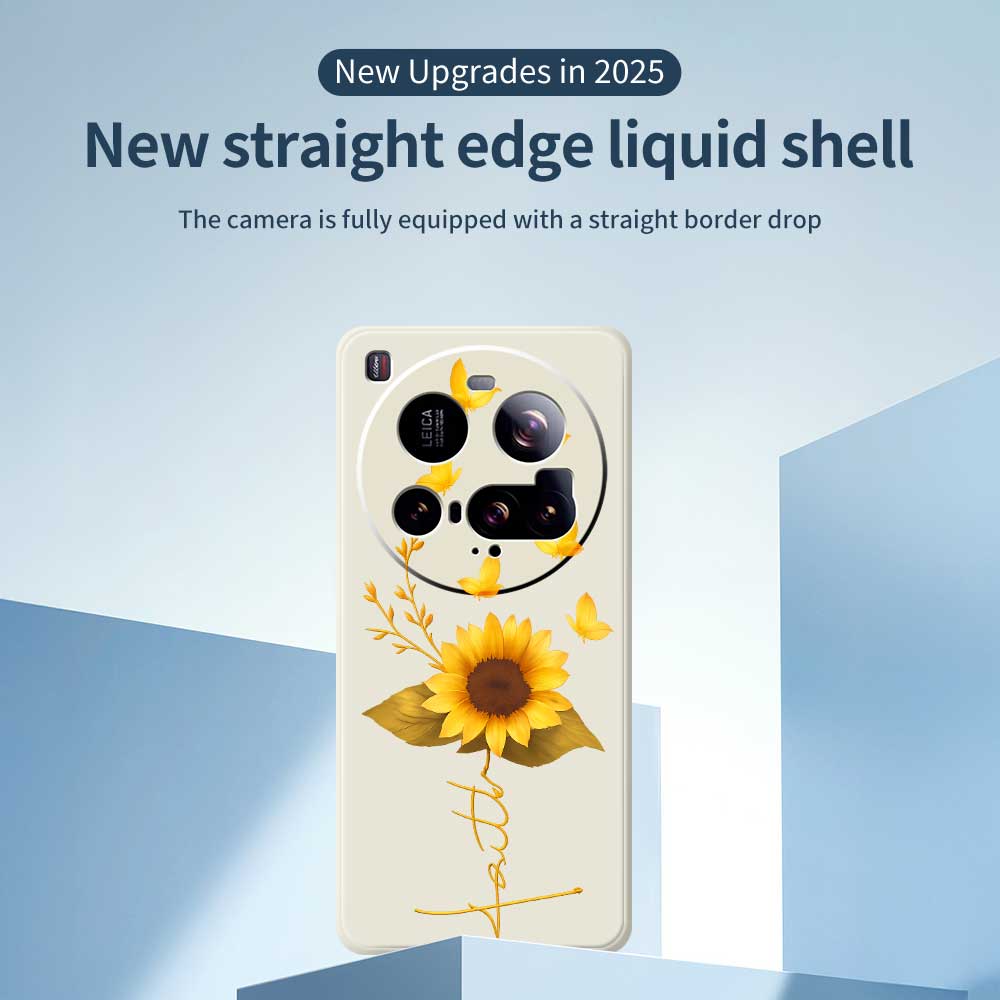 For Xiaomi 15 Ultra Case Golden Butterfly Sunflower Pattern Printing Straight Edge TPU Phone Back Cover
