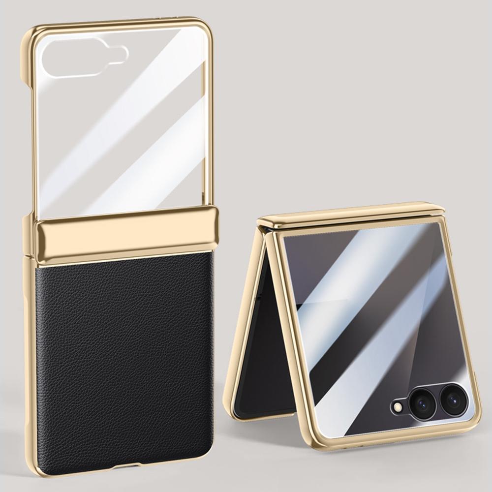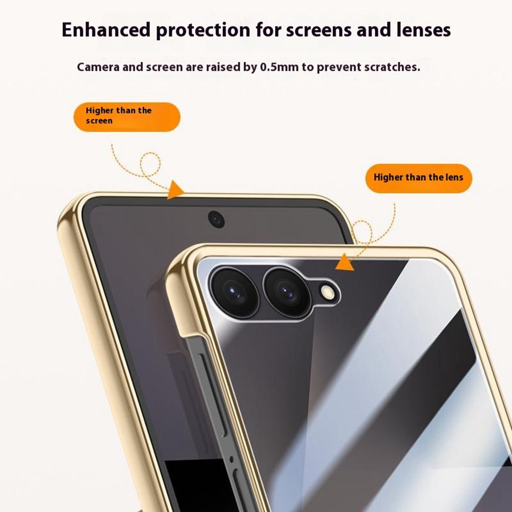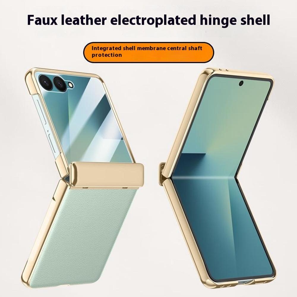 Для Samsung Galaxy Z Flip7 5G Чехол Защита шарнира Кожа+ПК Гальванизированная накладка для телефона с HD защитой заднего маленького экрана