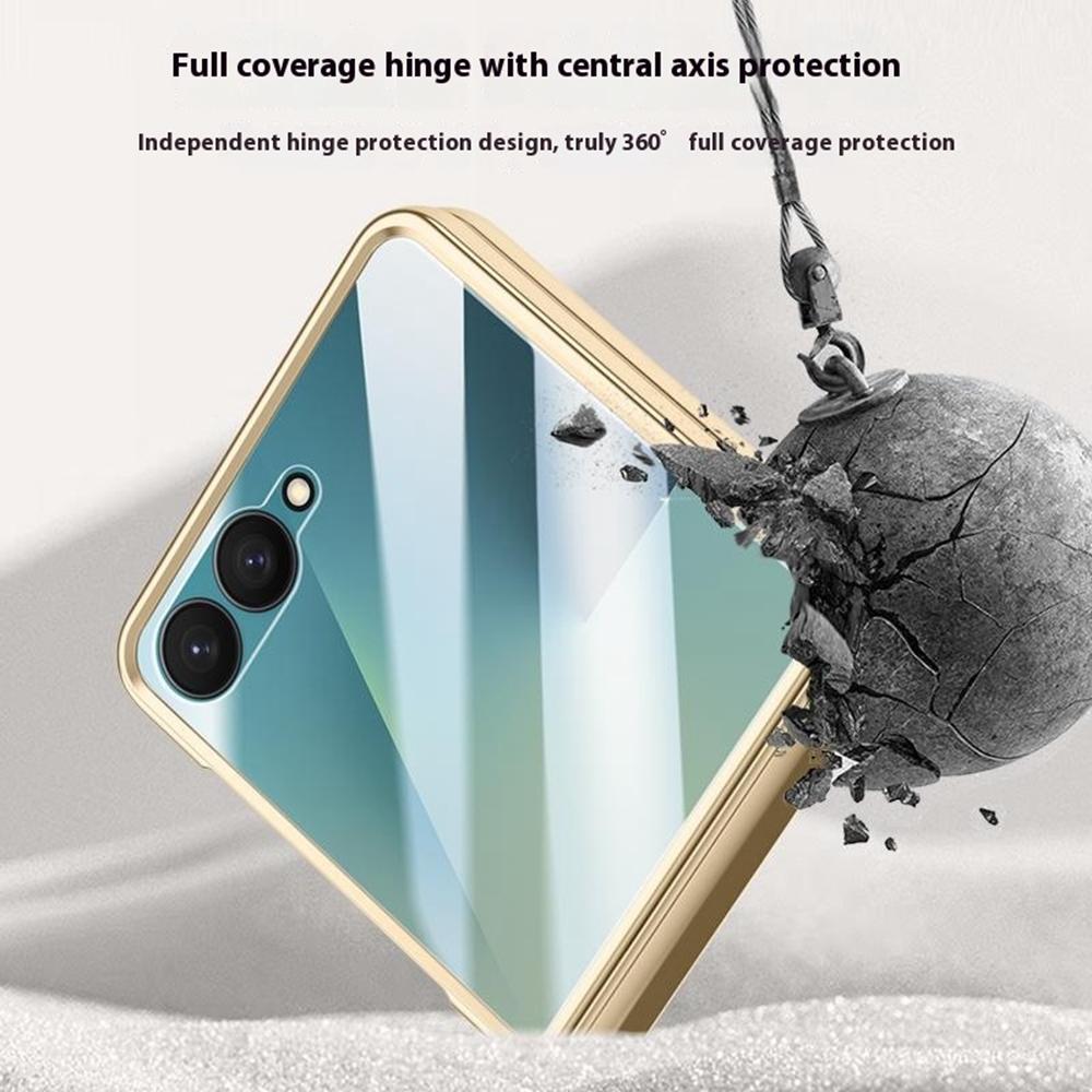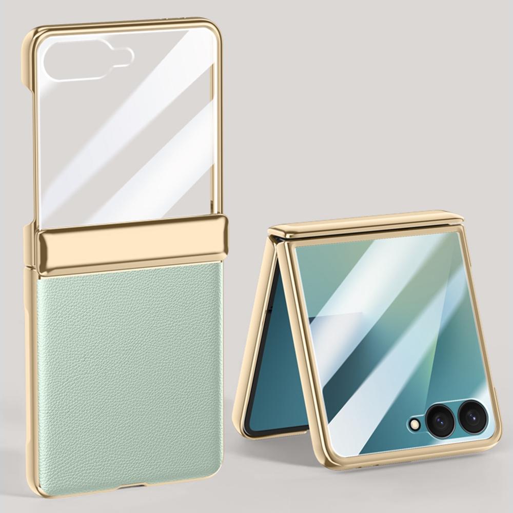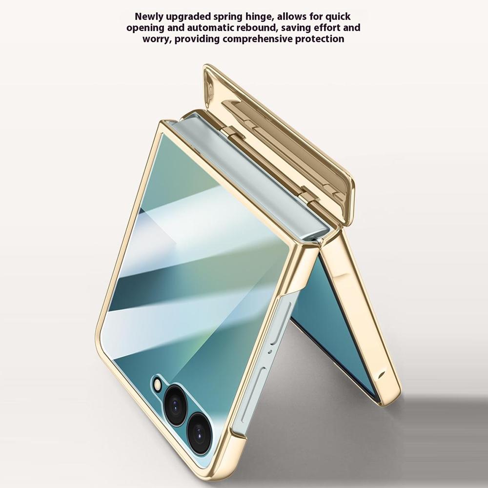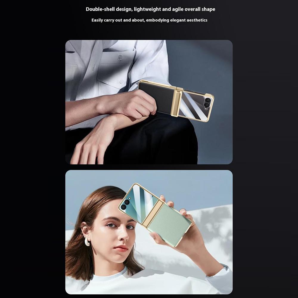 Для Samsung Galaxy Z Flip7 5G Чехол Защита шарнира Кожа+ПК Гальванизированная накладка для телефона с HD защитой заднего маленького экрана