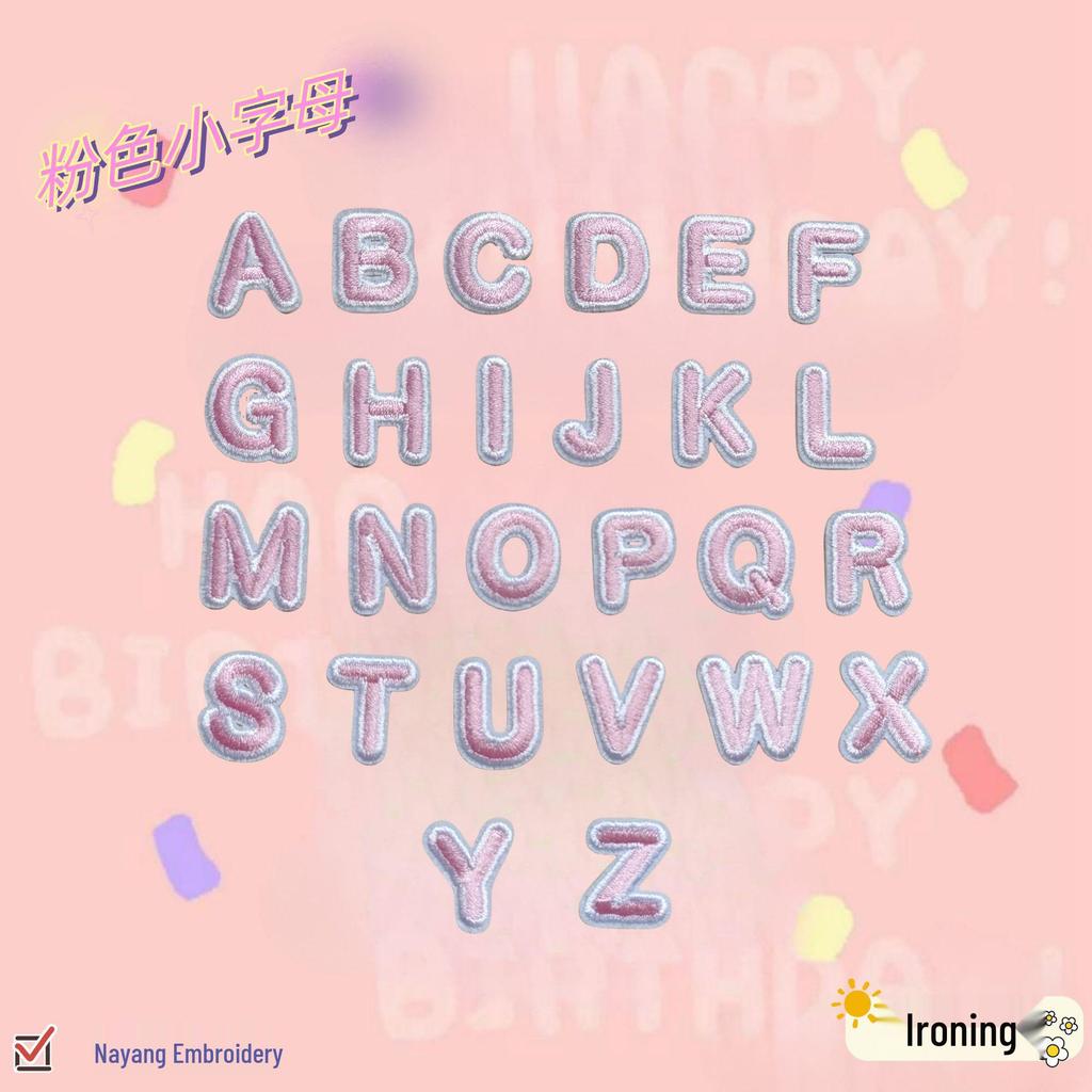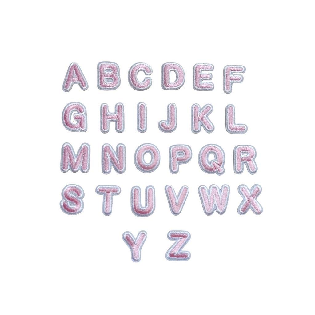 Розовая вышитая тканевая нашивка с английским алфавитом, приклеивающаяся утюгом