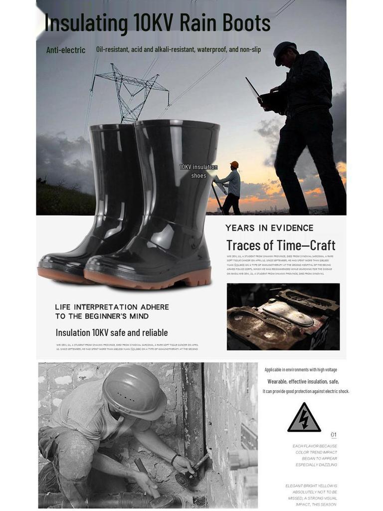 Изолированные водонепроницаемые защитные ботинки электрика Golden Oak, 10 кВ, Нескользящие, Защита от утечки, Средняя и высокая степень защиты.