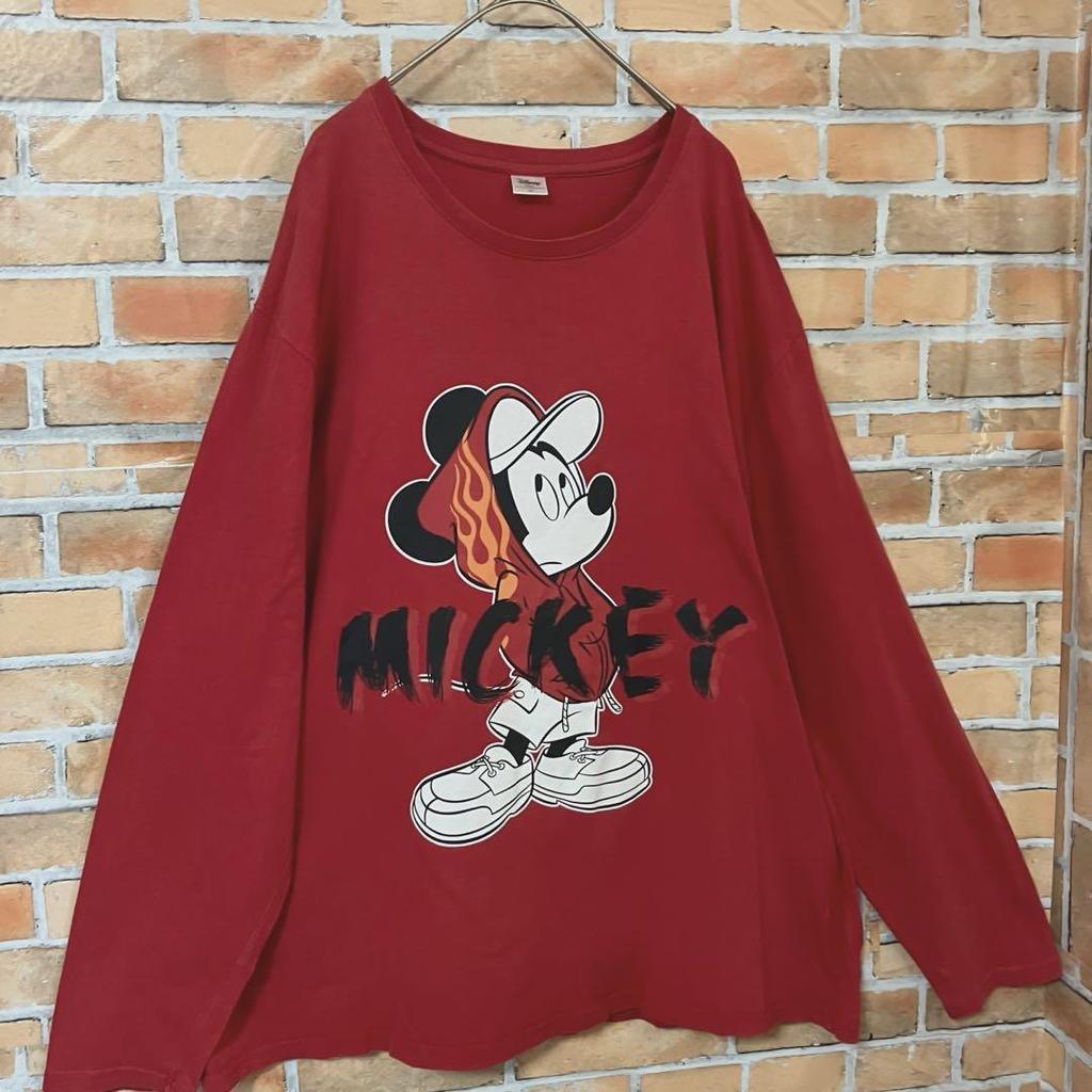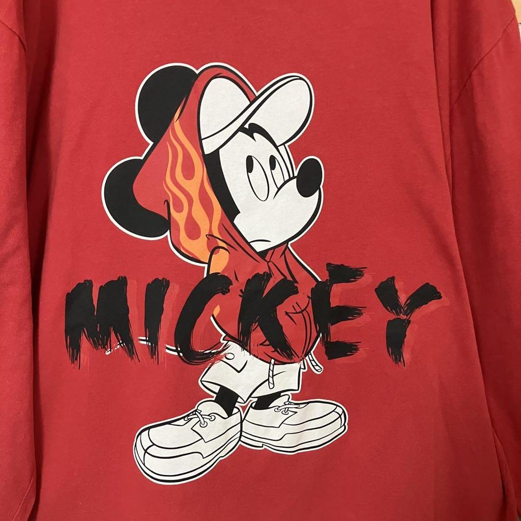 [Б/У] Disney Футболка с длинным рукавом уличного стиля с огненным принтом Микки Мауса
