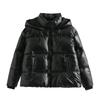 Женская серебристая атласная куртка с капюшоном 2023 года - европейско-американский стиль осень/зима