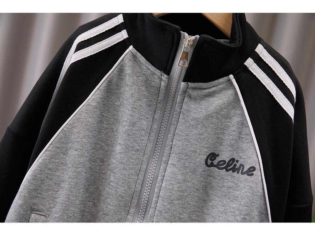 Откройте для себя модный и удобный комплект-двойку, идеально подходящий для юного модника.. Этот комплект включает стильную куртку в стиле стритвир в сочетании со спортивными брюками, оба изделия изготовлены из мягкого и дышащего хлопка.. Куртка с длинными рукавами обеспечивает тепло и универсальность для меняющихся сезонов, что делает ее идеальной как для весны, так и для осени.. Этот комплект, разработанный для активного образа жизни, сочетает в себе моду и функциональность, обеспечивая вашему ребенку отличный внешний вид и комфорт во время любой активности.