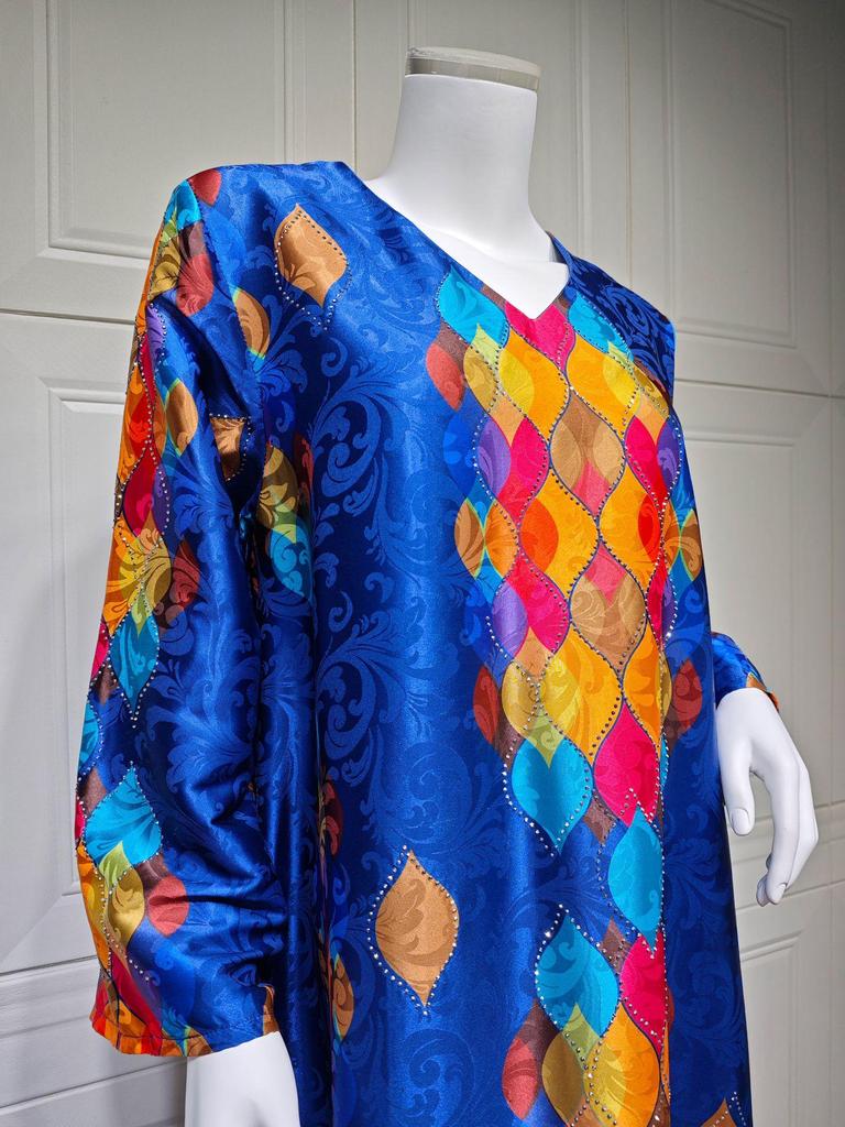 Пополните свой гардероб этим потрясающим платьем, созданным для легкого сочетания комфорта и стиля.. Платье, изготовленное из качественного полиэстера, имеет роскошную жаккардовую текстуру атласа, придающую элегантность вашему ансамблю.. Длинные рукава и V-образный вырез создают лестный силуэт, а принт из страз добавляет уникальный и изысканный шарм.. Идеальное как для дневных, так и для вечерних мероприятий, это платье — незаменимая вещь для любой модной женщины.