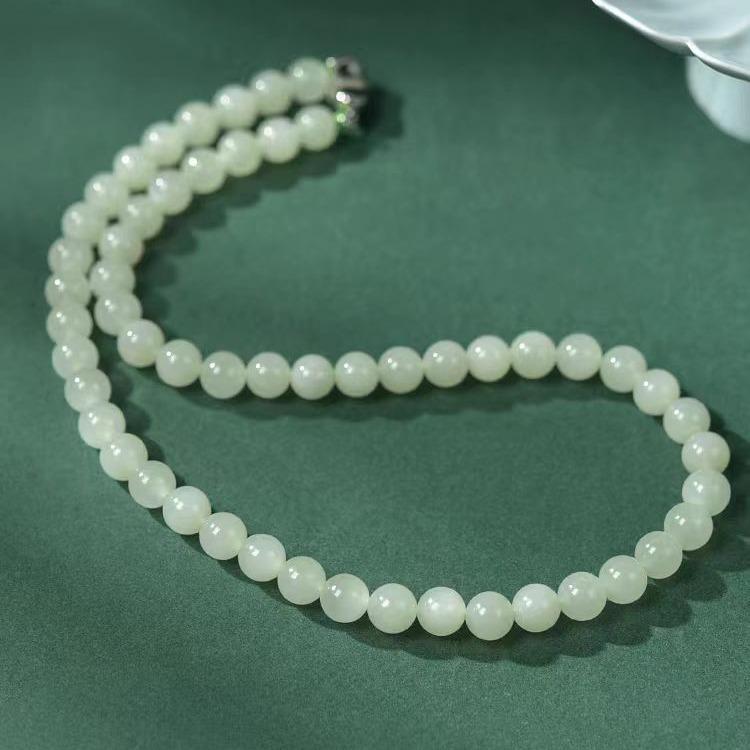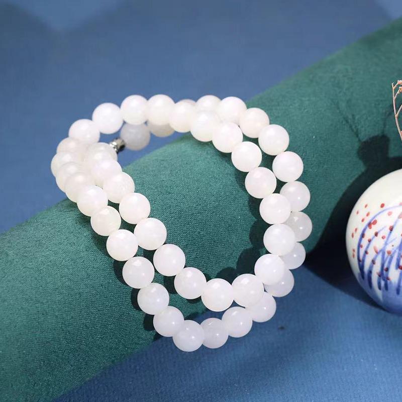 Браслет-ожерелье из натурального белого нефрита Хэтянь: Унисекс буддийские четки в стиле благополучия