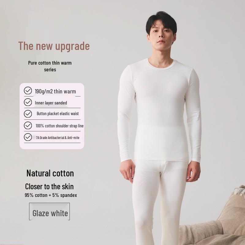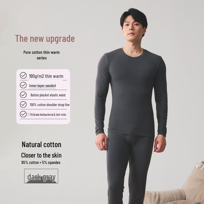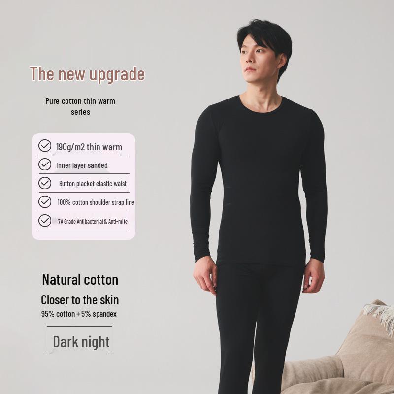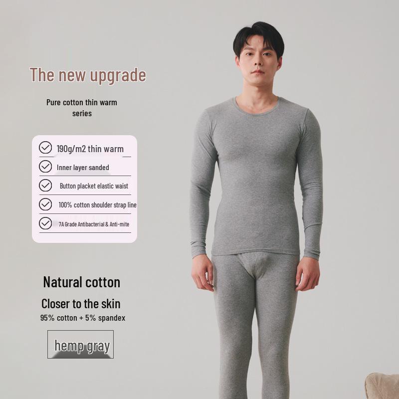 Мужской осенний термокомплект из чистого хлопка - свитер и брюки для молодежи