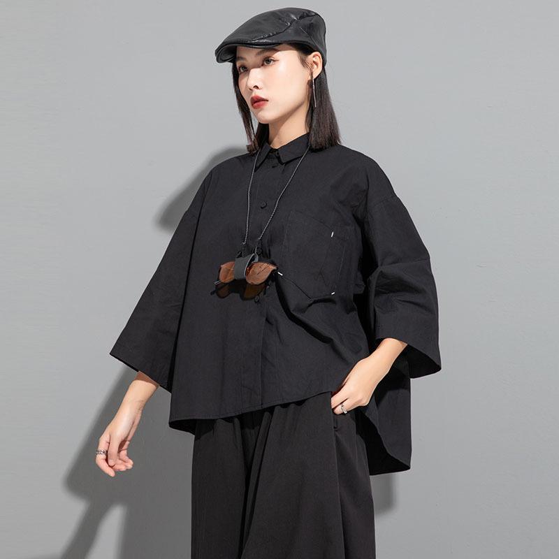 Женский темный топ в китайском стиле с нерегулярными рукавами средней длины и свободного кроя — купить товар онлайн с бесплатной доставкой по всему миру!