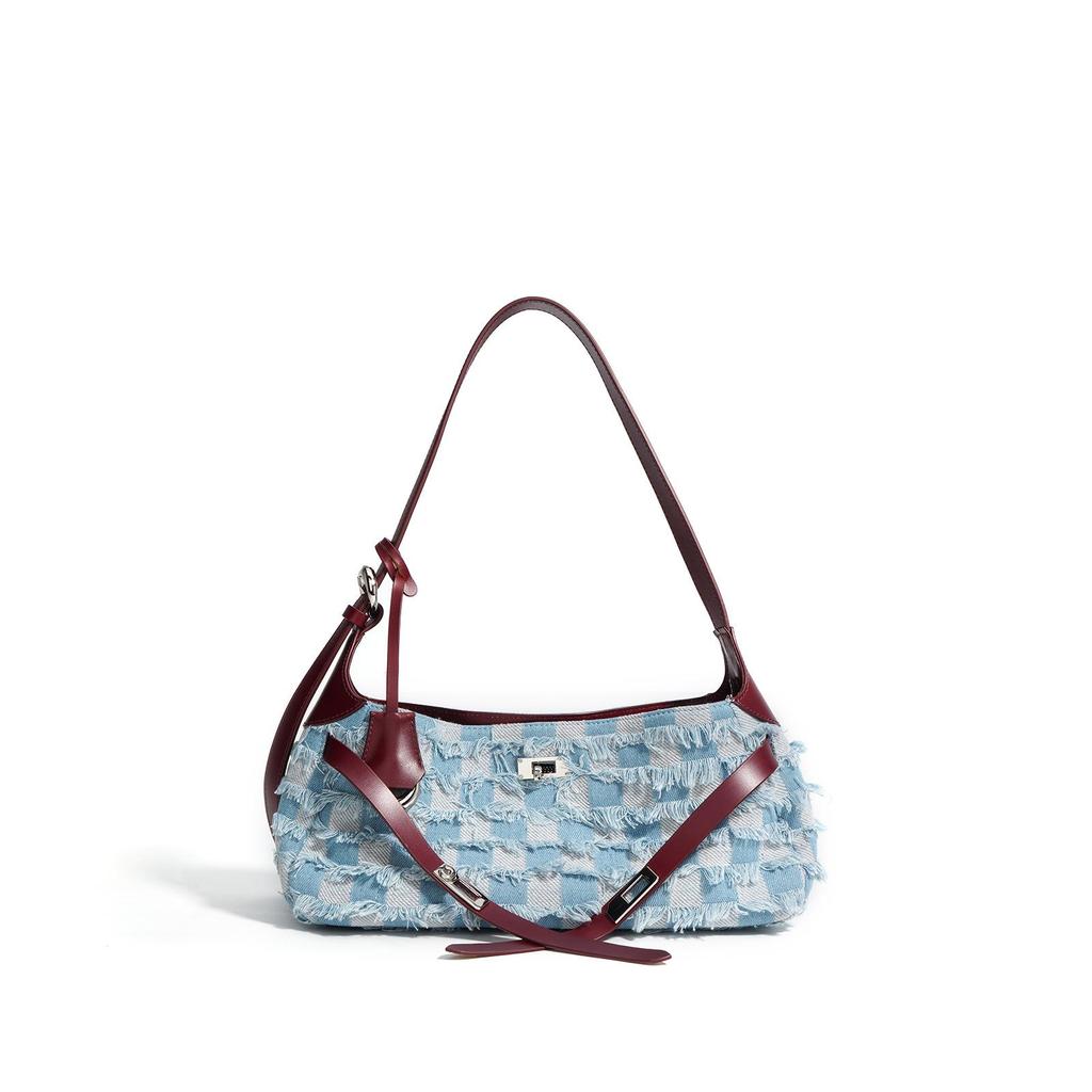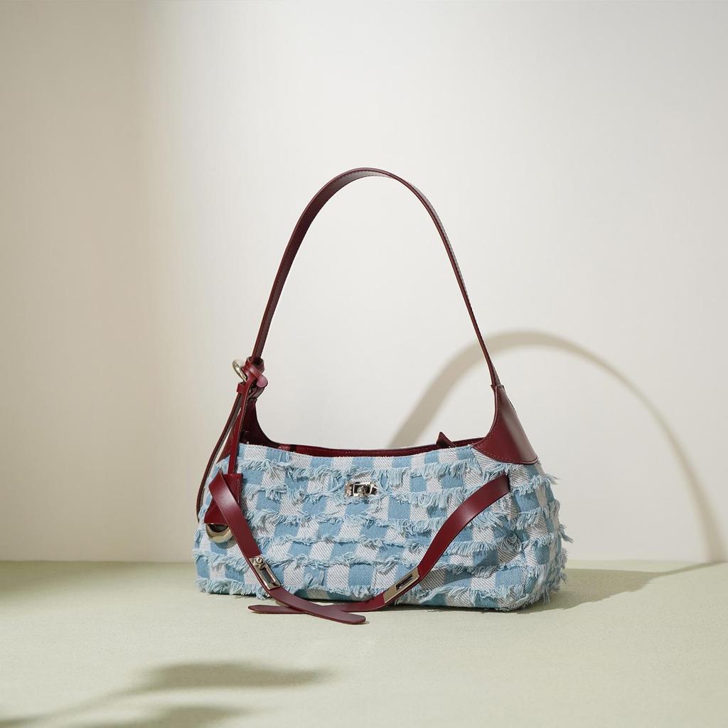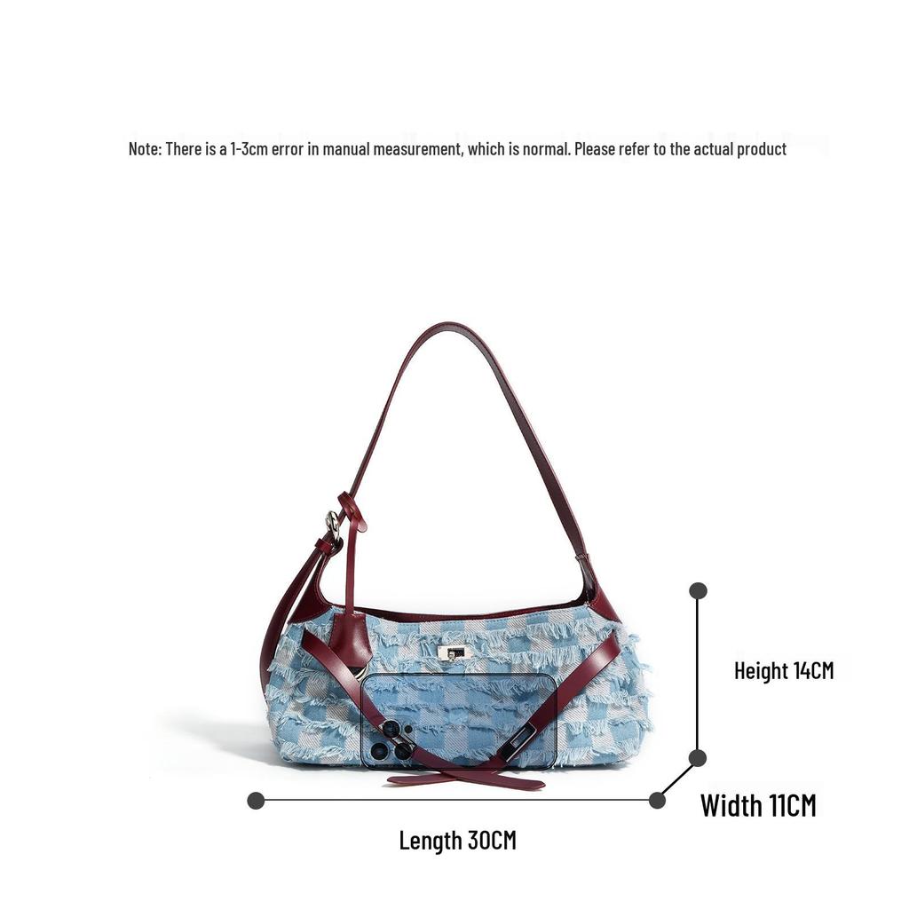 Женская сумка-тоут из коровьей кожи высшего слоя и денима, 2025, большой вместимости, подмышечная