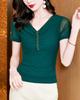 Летний топ с V-образным вырезом, женский, с бисером, облегающий, с коротким рукавом, 2023 — купить товар онлайн с бесплатной доставкой по всему миру!