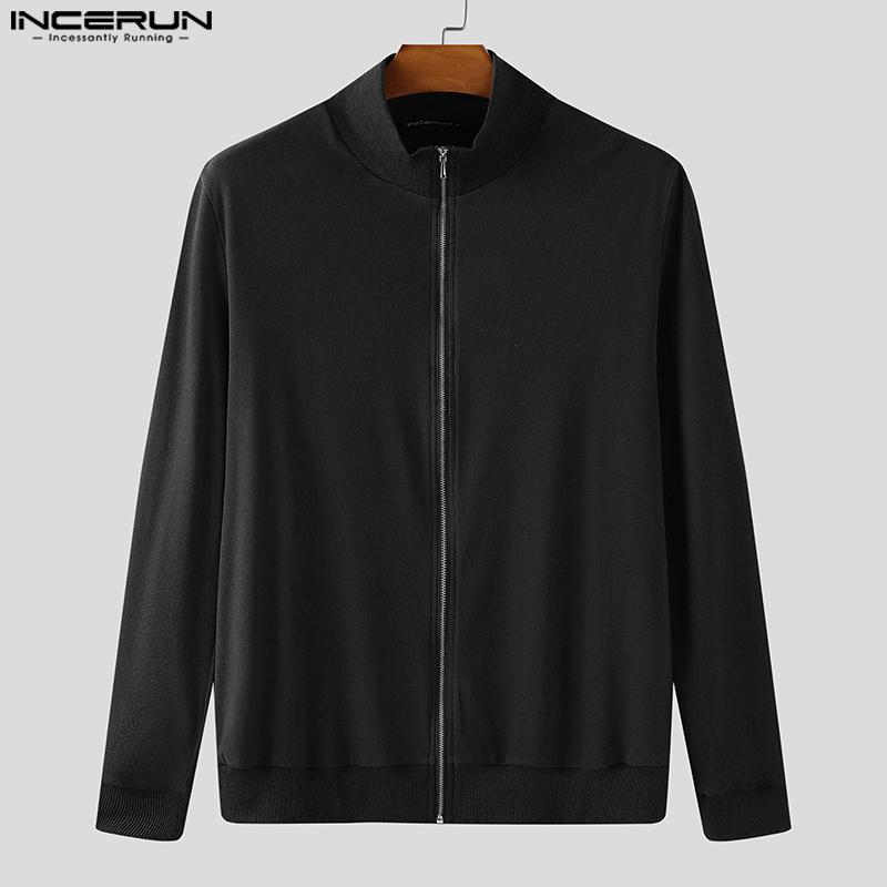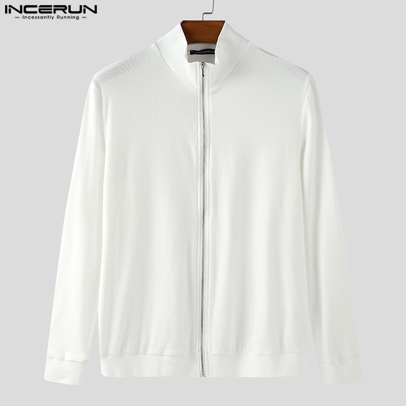 INCERUN S-XXXXXL Мужские кардиганы с длинным рукавом на молнии, повседневные, приталенные
