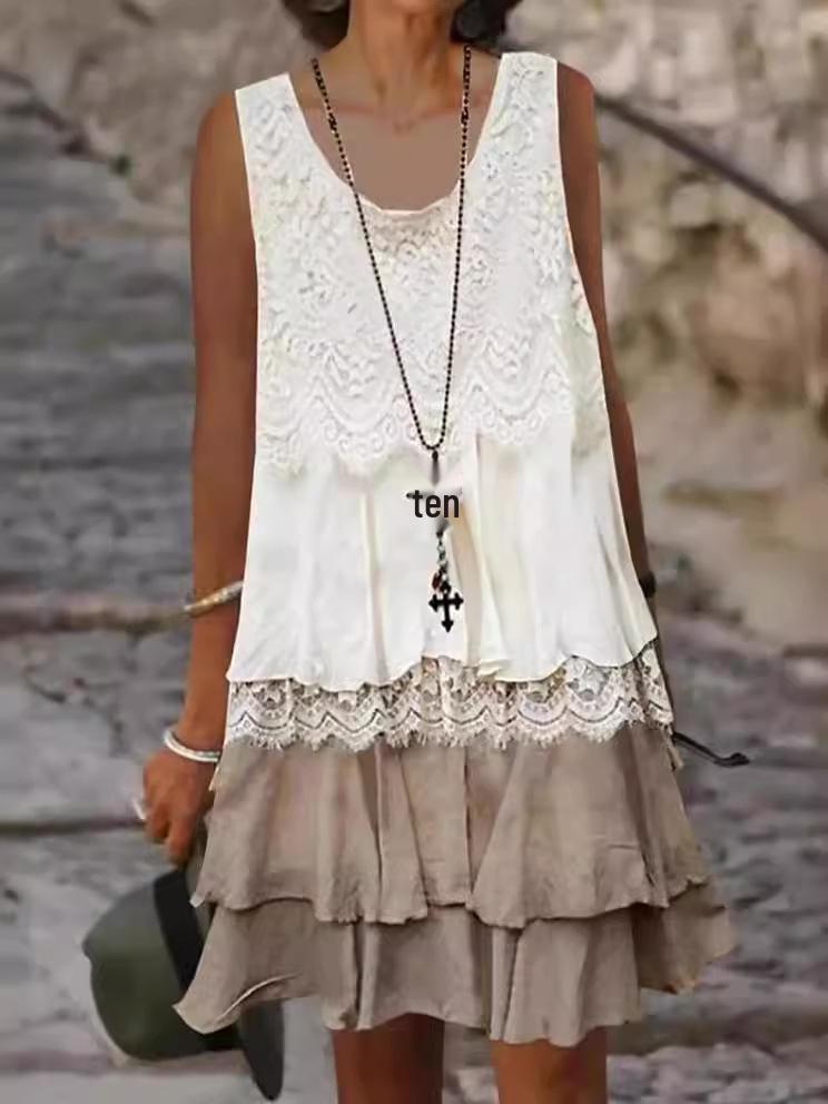 Международное женское платье без рукавов с кружевной отделкой, 2024 г. Q332