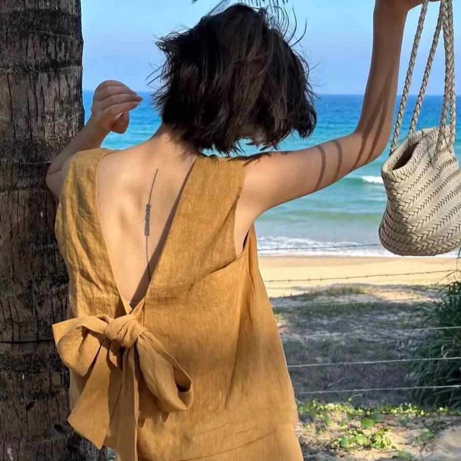 Летний комплект из топа без рукавов с V-образным вырезом и юбки миди 2024 — купить товар онлайн с бесплатной доставкой по всему миру!