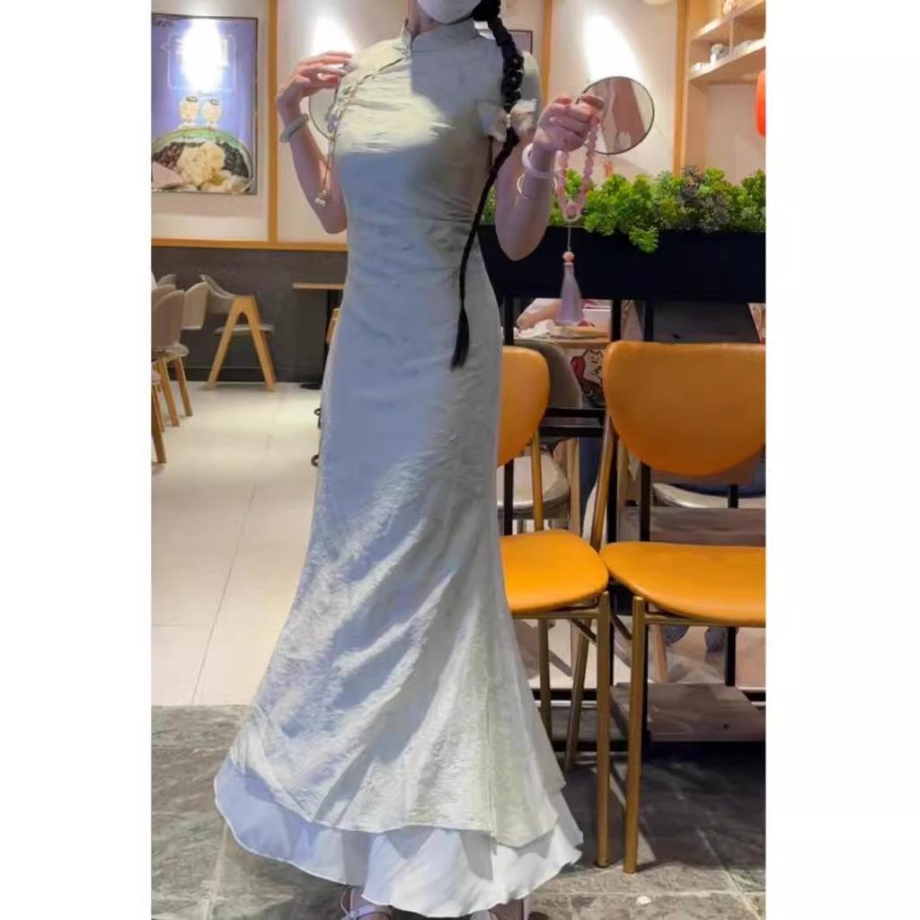Ретро китайское ципао со стойкой: Пошаговое платье-слим с лотосом — купить товар онлайн с бесплатной доставкой по всему миру!