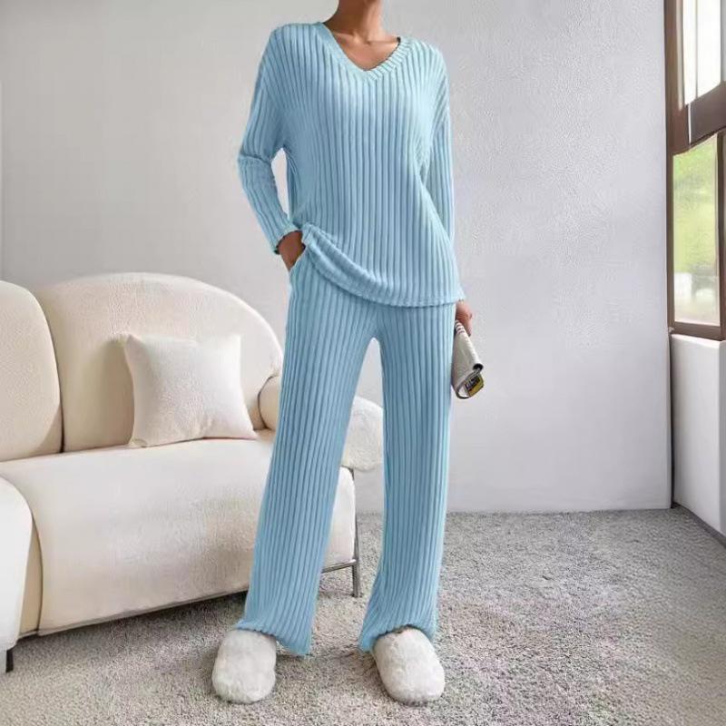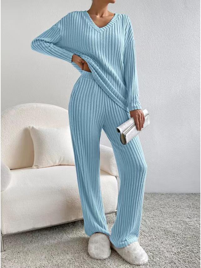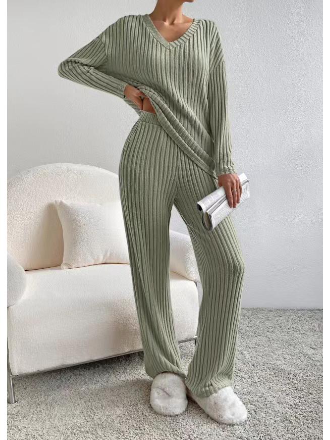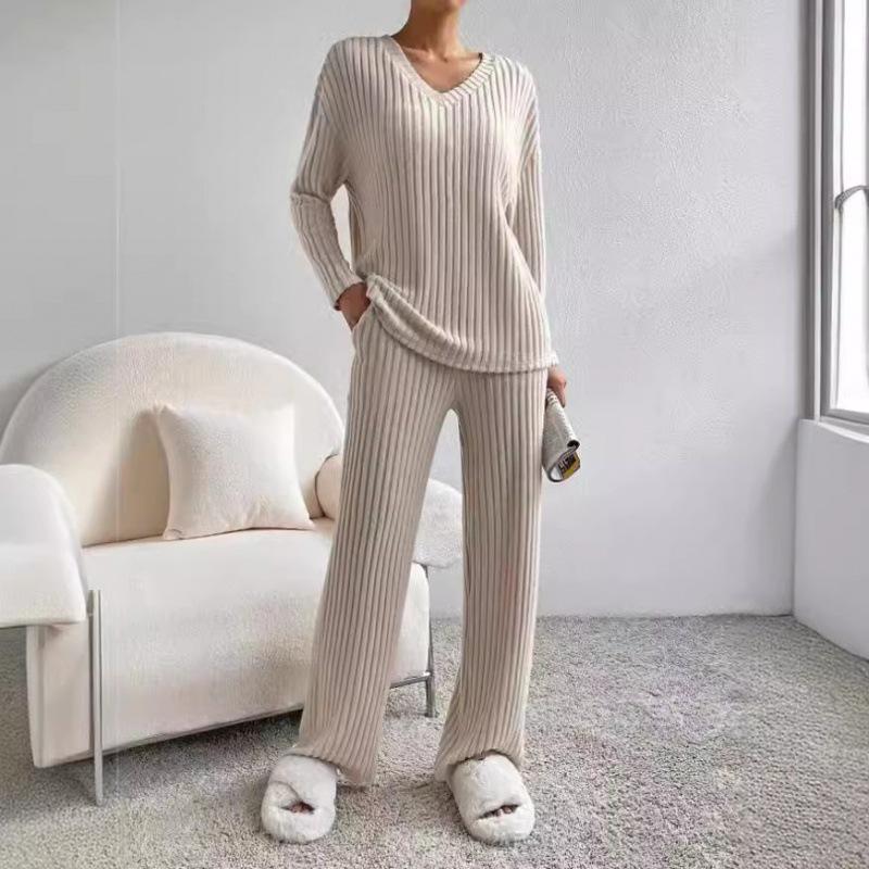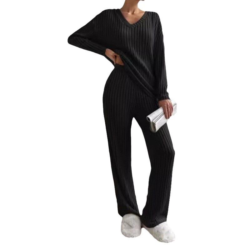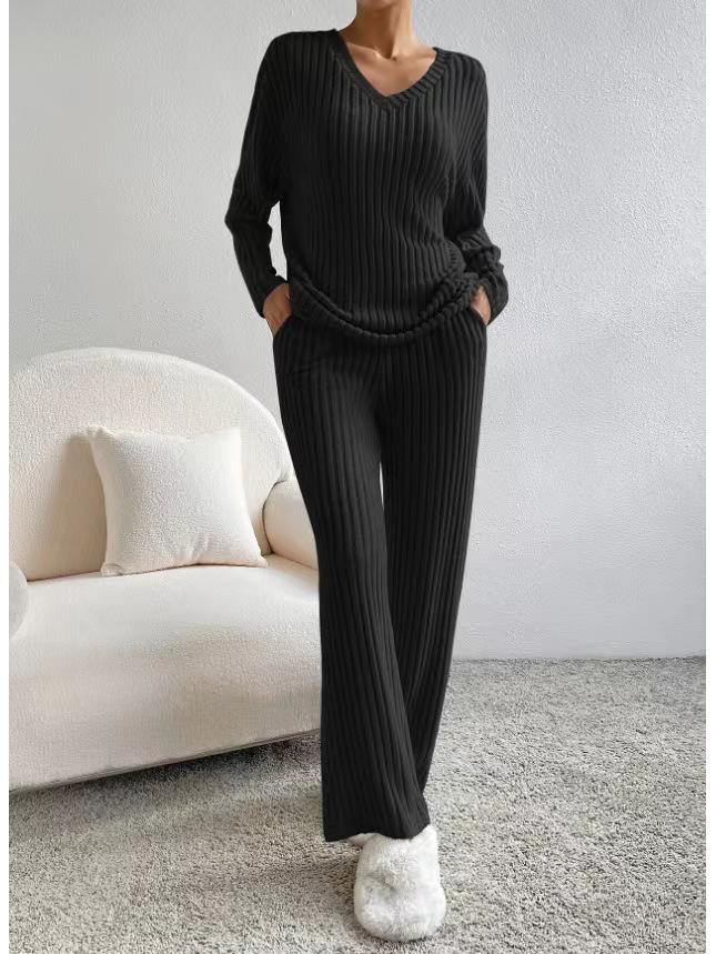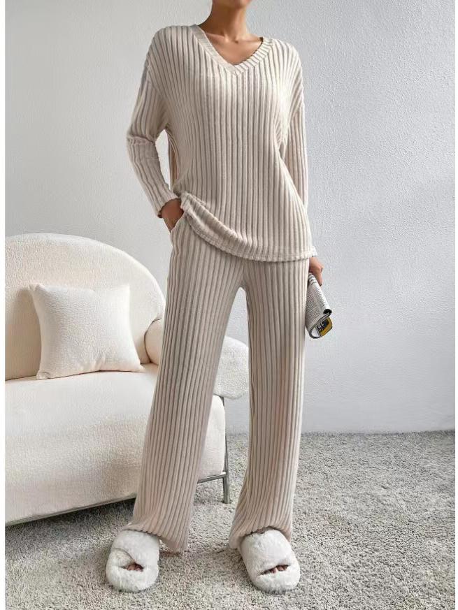 Почувствуйте идеальное сочетание комфорта и стиля с этим осенне-зимним костюмом-двойкой. Изготовленный из высококачественного полиэстера, комплект состоит из топа в рубчик с V-образным вырезом и повседневных брюк прямого кроя, что делает его идеальным для спортивного, но шикарного образа.. Ансамбль дополнен практичными карманами-декорациями, добавляющими нотку функциональности вашему наряду.. Этот комплект, выполненный с рифлеванной шлифованной отделкой, обещает как тепло, так и элегантность, что делает его незаменимым дополнением к вашему сезонному гардеробу.
