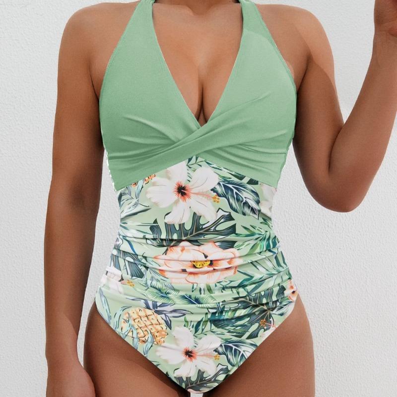 Новый купальник бикини с принтом, на шнуровке халтер, с высокой талией, цельный, сексуальный — купить товар онлайн с бесплатной доставкой по всему миру!