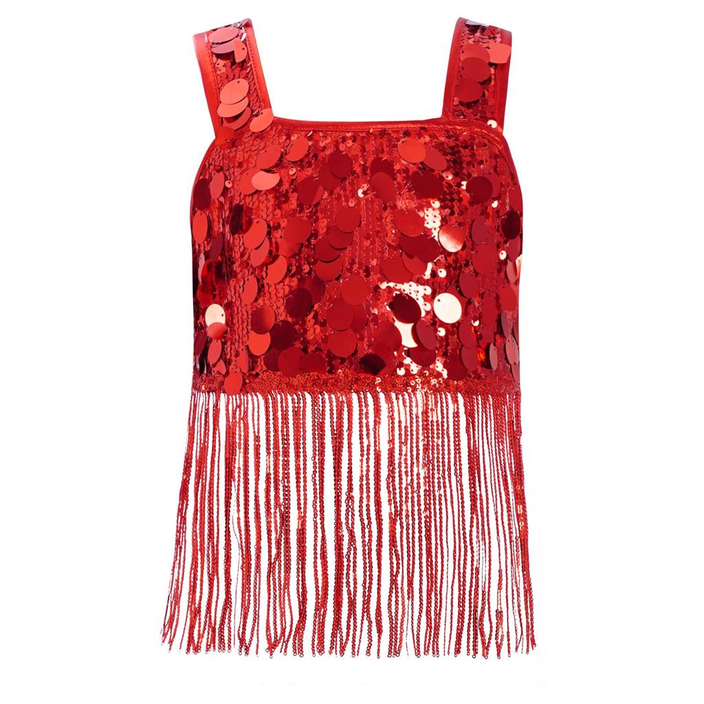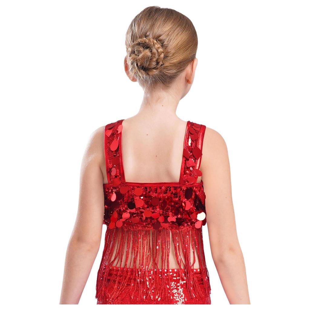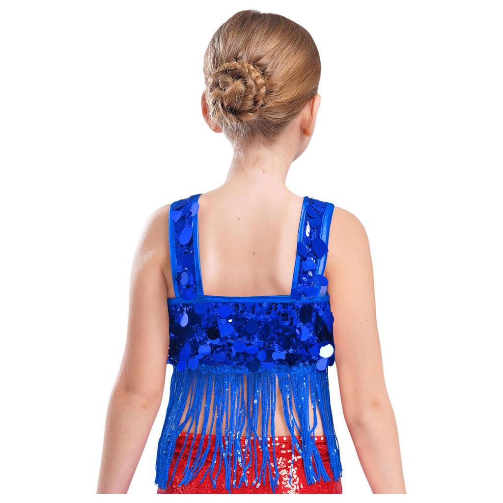 Девочки Танцевальный Кроп-Топ с Широкими Бретелями и Блестящей Бахромой из Пайеток для Джазового Вечернего Выступления