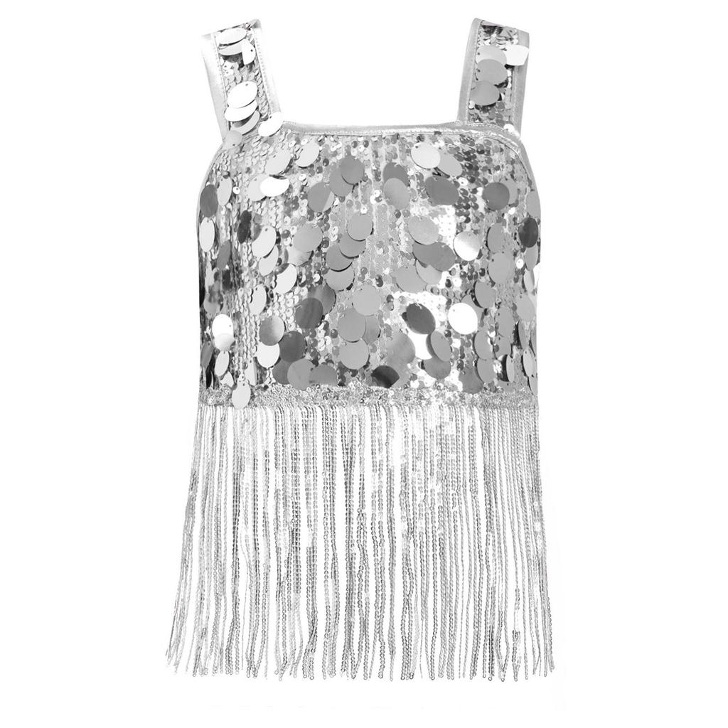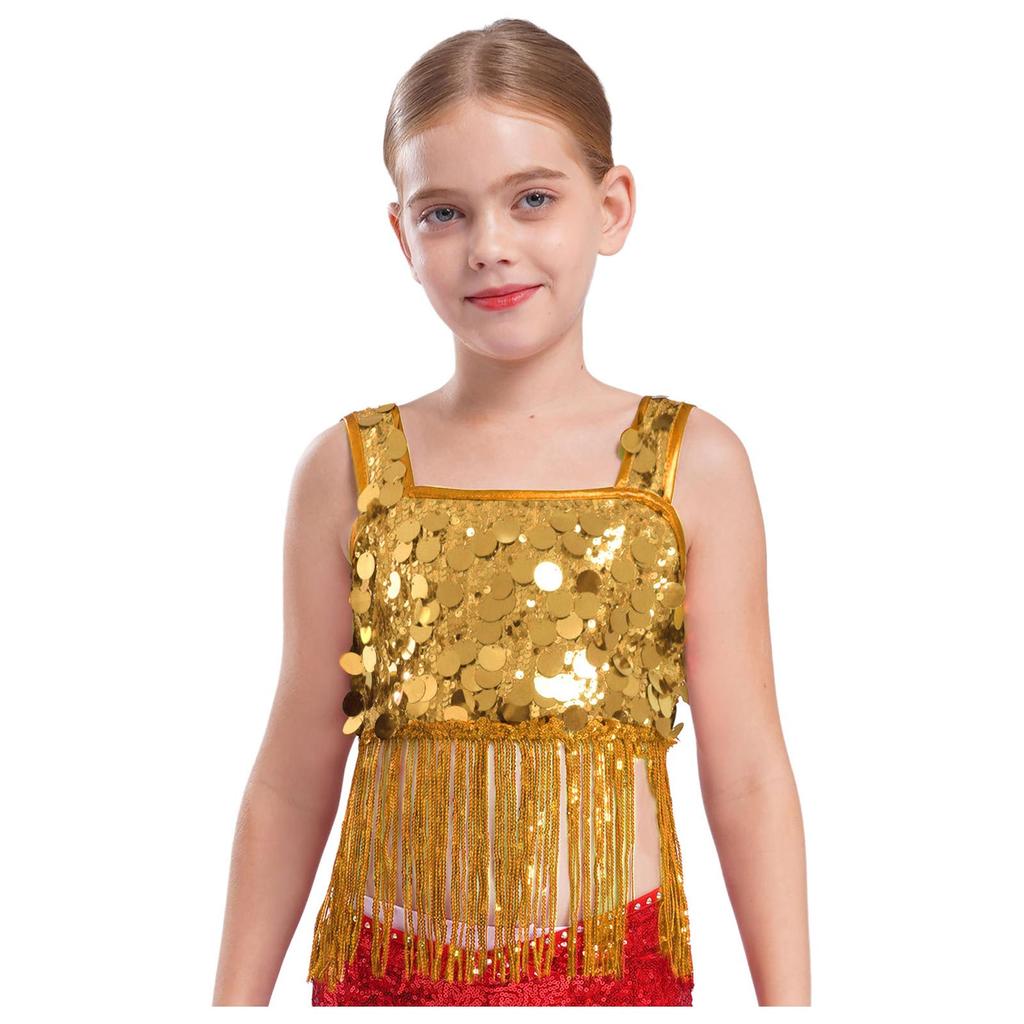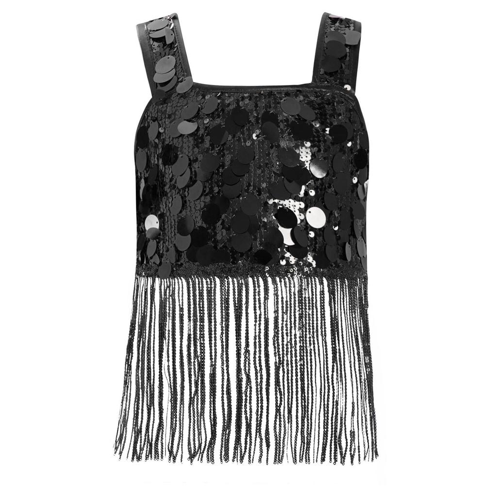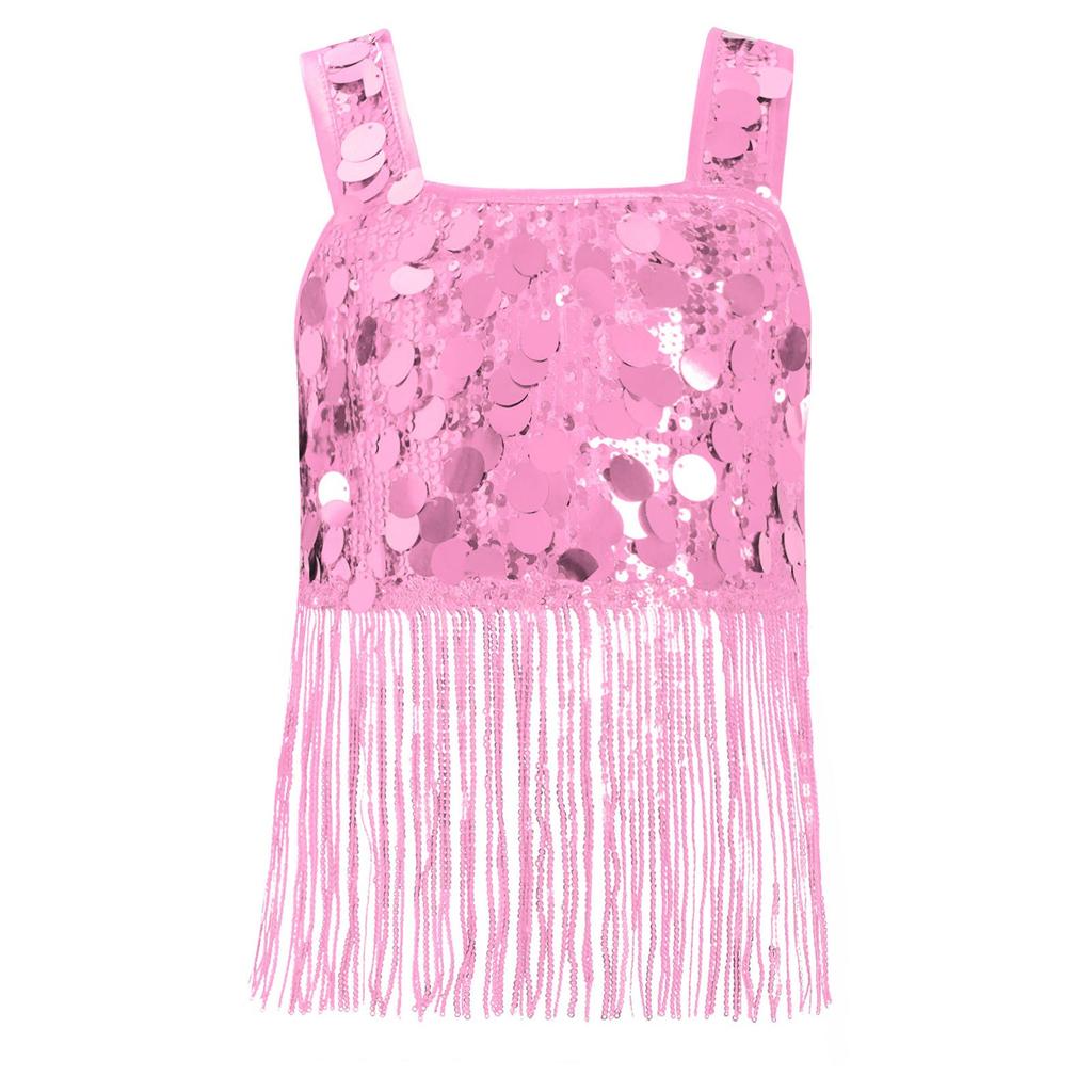Девочки Танцевальный Кроп-Топ с Широкими Бретелями и Блестящей Бахромой из Пайеток для Джазового Вечернего Выступления