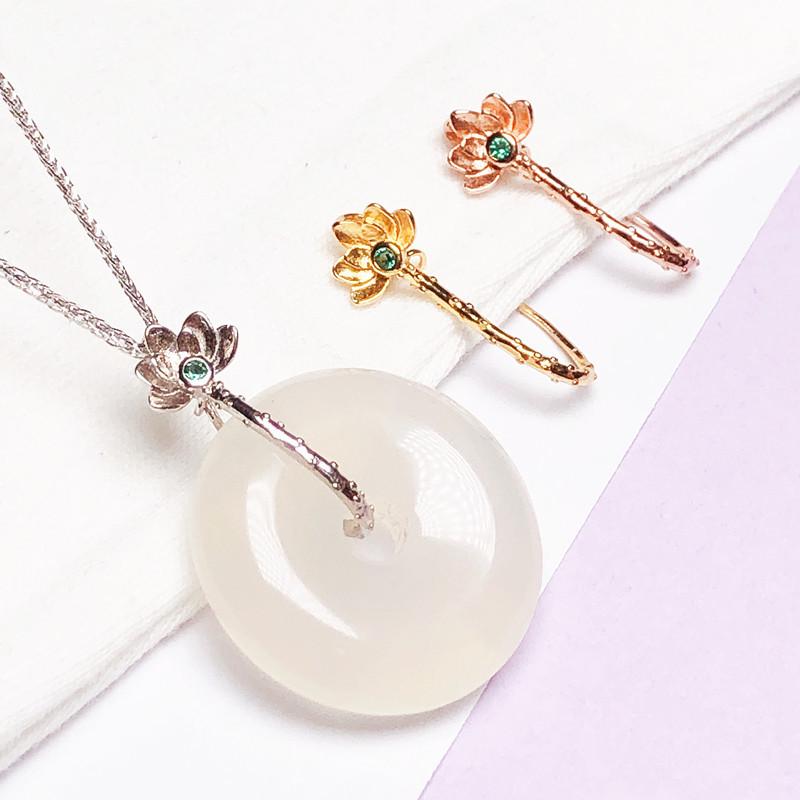 Клипса-цветок из стерлингового серебра S925 с жадеитом и янтарем, с застежкой-иглой — купить товар онлайн с бесплатной доставкой по всему миру!