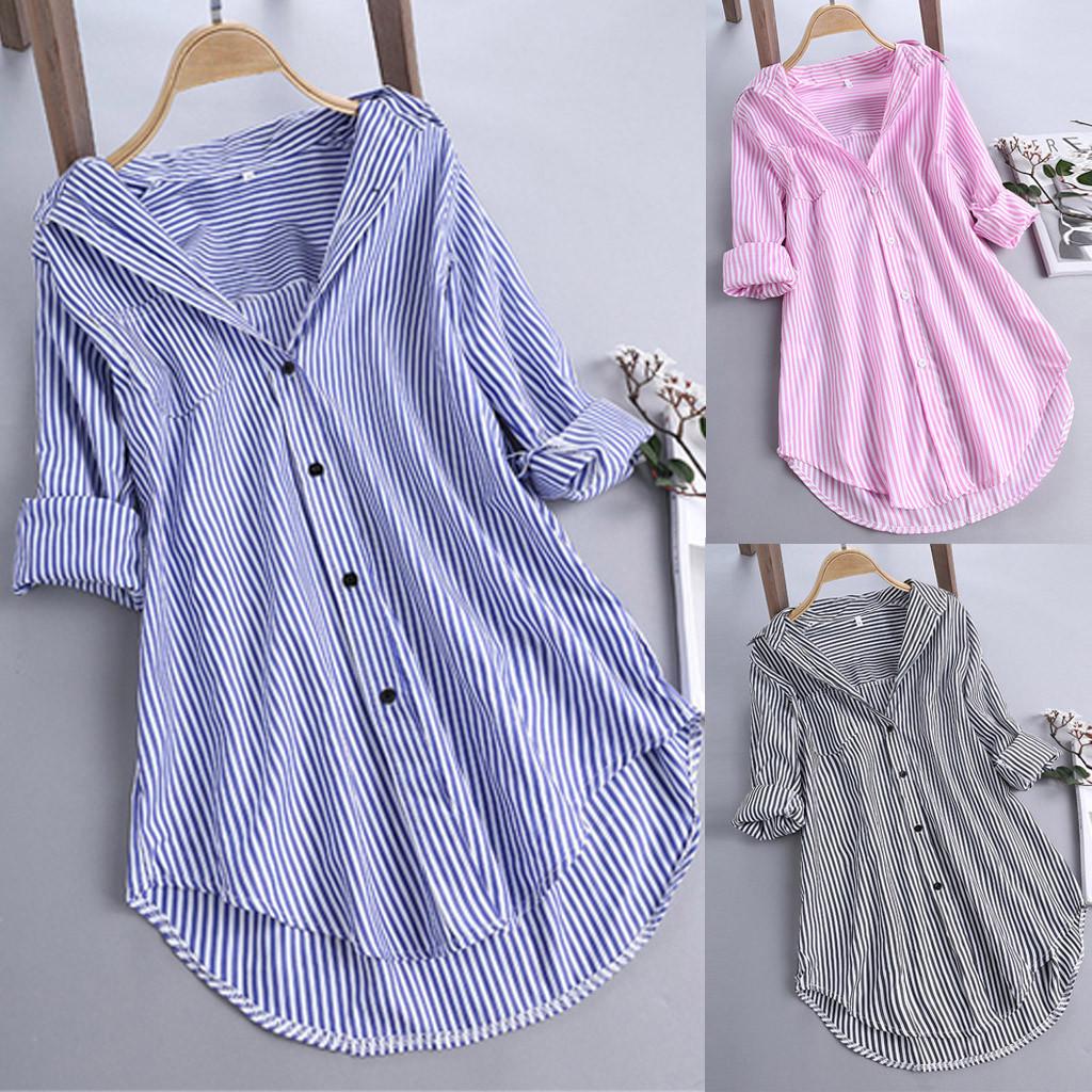 2022 Весна/Лето Женская Шикарная Полосатая Рубашка С Длинным Рукавом и Острым Воротником Свободного Кроя
